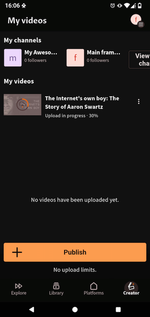 As you can see, it's quick and easy to upload a video with the PeerTube app!